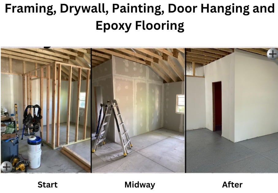 Barn Framing, Drywall, Painting, Flooring